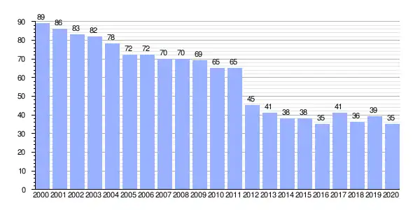 | Gráfica de evolución demográfica de Maceiras (lugar) entre 2000 y 2020 |