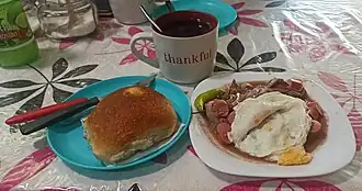 | Ingredientes | Tomate, cebolla, pimentón, locoto, salchicha, carne de res, huevo, pan, bebida caliente | |
