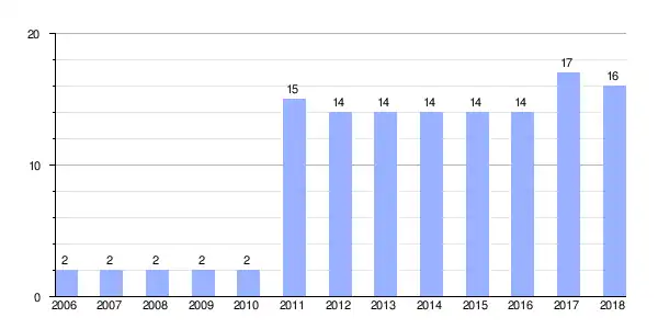 | Gráfica de evolución demográfica de Maciñeiras[1] entre 2006 y 2018 |