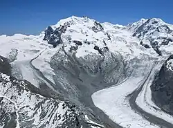 ![]() Vista aérea de la Pared Este del Monte Rosa | ||