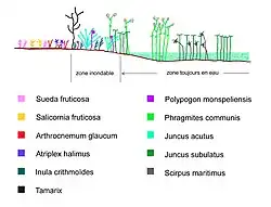 La llanura de Macta parece una vasta pradera salada casi absolutamente plana. Esta región tiene la particularidad de presentar rodales puros de Salsolaceae, Juncaceae y gramineas. Entre ellos:
