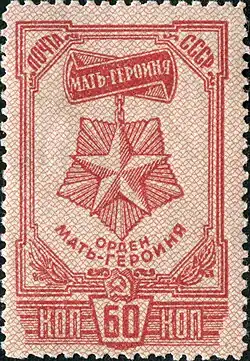 El título honorífico de Madre Heroína (en ruso: Мать-героиня) fue un premio estatal de la Unión Soviética y actualmente de Rusia. Otorgado por tener y criar una familia numerosa. La intención del estado no era solo honrar a estas familias numerosas, sino también aumentar la asistencia financiera para mujeres embarazadas, madres de familias numerosas y madres solteras, y promover un mayor nivel de salud en la madre y el niño.[1] El premio se estableció en 1944 y siguió existiendo hasta la caída de la Unión Soviética en 1991. El 15 de agosto de 2022, Vladímir Putin firmó un decreto que revive este título honorífico (véase Madre Heroína).[2][3]