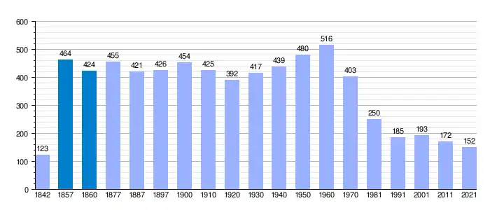 Población de derecho según los censos de población del INE. Población de hecho según los censos de población del INE.Entre el censo de 1857 y el anterior, crece el término del municipio porque incorpora a Tornadijo.[2] |