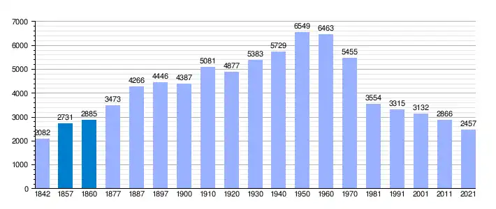 | Gráfica de evolución demográfica de Madroñera[6] entre 1842 y 2021 |