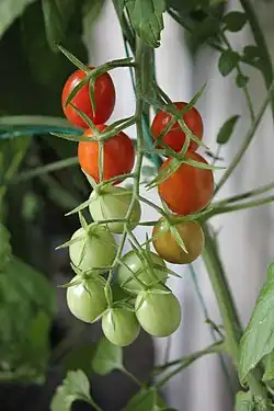 Tomates cherri en diversas etapas de la maduración.
