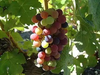 Racimo de uva en varias etapas de su madurez.