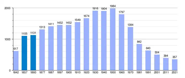| Gráfica de evolución demográfica de Magaz de Cepeda[8] entre 1842 y 2021 |