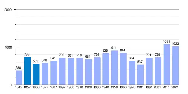 | 1900 | 1910 | 1920 | 1930 | 1940 | 1950 | 1960 | 1970 | 1981 | 1991 | 2001 | 2011 |