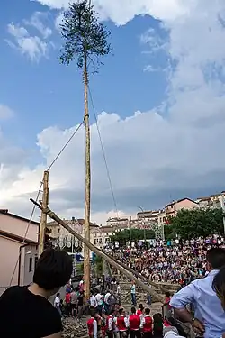 La fiesta, descrita como «uno de los ritos arbóreos más importantes de Italia»,[1] combina costumbres agrícolas paganas con elementos católicos y puede tener orígenes lombardos.