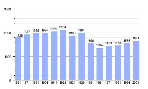 | Gráfica de evolución demográfica de Magliano Alfieri entre 1861 y 2001 |