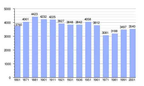 | Gráfica de evolución demográfica de Magliano de' Marsi entre 1861 y 2001 |