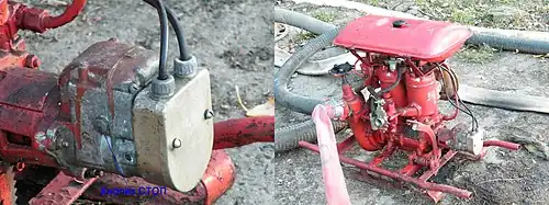 El hecho de que la magneto produce bajos voltajes a velocidades reducidas, dificulta el arranque del motor.[7] Por lo tanto, algunas magnetos disponen de un impulsor de acoplamiento, un sistema mecánico que regula la conexión entre el motor y el eje de la magneto, dotado de un acumulador mecánico equipado con un muelle espiral. Una vez arrollado el muelle, el mecanismo libera momentáneamente el acoplamiento entre el motor y la magneto, de forma que esta puede girar libremente a gran velocidad impulsada por el muelle espiral. En un momento dado, el acoplamiento pone en movimiento el motor, pudiéndose iniciar el proceso de ignición, dado que la magneto es capaz de generar chispas con la intensidad suficiente.[7]