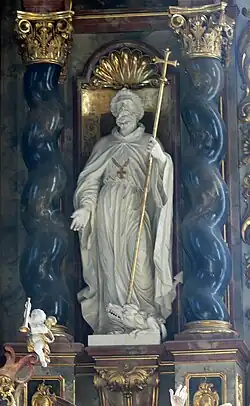 Bonifatius Stirnberg: “Allgäu Holy” (Gallus, Magnus, Columban), 2000Esculturas a lo largo de la carretera Capilla St. Gallus (Leutkirch)