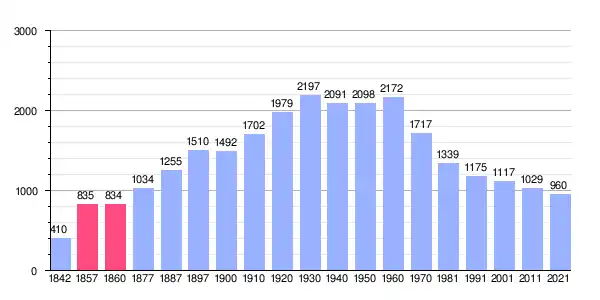 | Gráfica de evolución demográfica de Maguilla[6][7] entre 1842 y 2021 |