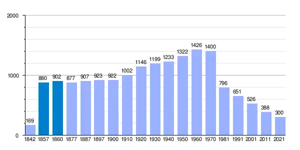 | Gráfica de evolución demográfica de Mahide[17] entre 1842 y 2021 |