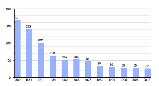 Los datos demográficos contemplados en este gráfico de la comuna de Maison-Maugis[4] se han cogido de 1800 a 1999 de la página francesa EHESS/Cassini, y los demás datos de la página del INSEE.[5]