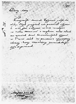 15 Maggio 1771. Illustrimo Signor Principe e Accademici filarmonici [...] Massimo Beresovskoy detto Russo desiderando di essere aggregato in gualetà di Compositore e Maestro di Capella dell’Accademia Celeberrima de filarmonici, suplica in Signor Principe, et Accademia de filarmonici di ameterlo all esperimento, ad aggregazione dell’Accademia. Che della grazia qua deus.15 de mayo de 1771: Venerable Señor Presidente y Profesores de la Academia [...] Maksim Berezovski, apodado El Ruso, deseando ser admitido en las filas de compositores y maestros de capilla de la más famosa Academia Filarmónica, solicita al Señor Presidente y a los miembros de la Academia Filarmónica que lo admita al examen de admisión a la Academia. A la gloria del Señor.Maxim Berezovski[28]