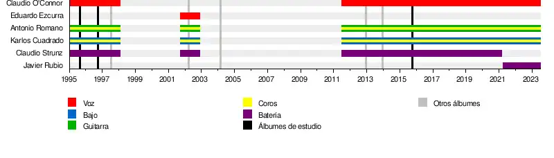- Claudio O'Connor - Voz líder (1995-1998, 2011-presente)