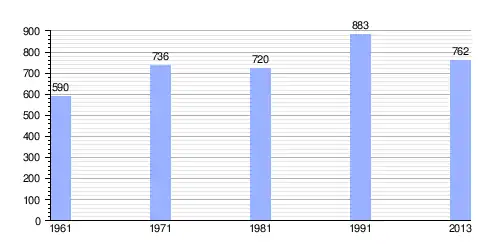 | Gráfica de evolución demográfica de Malešići entre 1961 y 2013 |