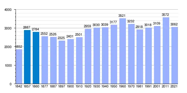 | Gráfica de evolución demográfica de Mallén[3] entre 1842 y 2021 |