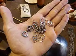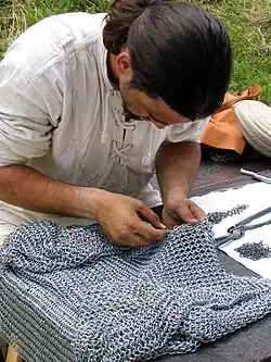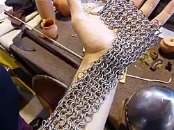 - Esta obra contiene una traducción parcial derivada de «Chain mail» de Wikipedia en inglés, concretamente de esta versión, publicada por sus editores bajo la Licencia de documentación libre de GNU y la Licencia Creative Commons Atribución-CompartirIgual 4.0 Internacional.