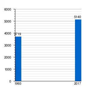 | Gráfica de evolución demográfica de Mallares entre 1993 y 2017 |