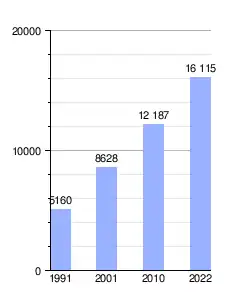 | Gráfica de evolución demográfica de Malvinas Argentinas entre 1991 y 2022 |