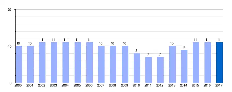 | Gráfica de evolución demográfica de Mambliga entre 2000 y 2017 |
