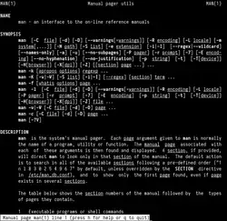 En ocasiones el mismo programa posee diversas secciones de manual, cuando esto ocurre suele mostrar un mensaje indicando la sección, como man(1) y man(7), o exit(1) y exit(3). Para acceder a estas secciones basta con indicarlo de la siguiente forma: