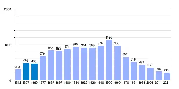 | Gráfica de evolución demográfica de Mancera de Abajo[6] entre 1842 y 2021 |