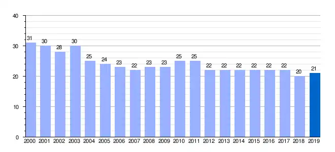 | Gráfica de evolución demográfica de Manceras[3] entre 2000 y 2019 |
