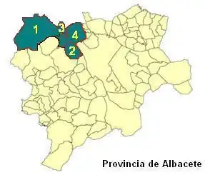 Barrax (189,86 km²), La Roda (398,79 km²), Minaya (69,83 km²), y Villarrobledo (862,41 km²).