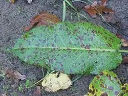 Las manchas de las hojas son áreas necróticas redondeadas, halladas en las hojas de muchas especies de plantas, mayormente causada por fungi y/o bacterias parásitos.