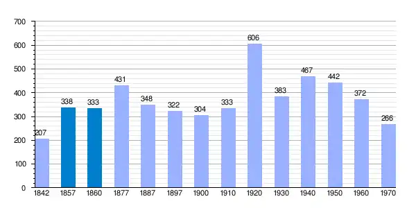 | Gráfica de evolución demográfica de Manjirón[4] entre 1842 y 1970 |