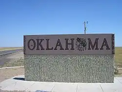 Señal de bienvenida al estado, situada en el mango de Oklahoma, en el borde con Nuevo México