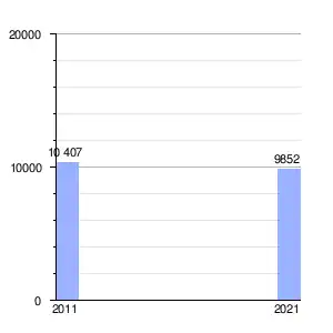 | Gráfica de evolución demográfica de Mangualde, Mesquitela e Cunha Alta entre 2011 y 2021 |