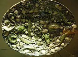 En Francia, la cerámica de Saint-Porchaire de formas manieristas y decoración se produjo en cantidades limitadas para una clientela aficionada a la moda restringida de los años 1520 a 1540, mientras que las pobladas y desconcertantes composiciones semejantes a la vida de serpientes y sapos caracterizan los platos de vajilla pintada de Bernard Palissy. Como los Jamnitzer de vez en cuando,[39] Palissy hizo moldes de pequeñas criaturas auténticas y plantas para aplicar a sus creaciones.