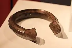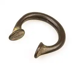 La Manilla es una forma de dinero, usualmente hecha de bronce o cobre, que se usaba en África occidental.[1] Se produjeron en grandes cantidades y en una amplia gama de diseños, tamaños y pesos. Se originó antes del período colonial, tal vez como resultado del comercio con el Imperio portugués, la manilla continuó sirviendo como dinero y objeto decorativo hasta finales de la década de 1940 y todavía se utilizan como ornamento en algunos contextos. En la conciencia popular, están particularmente asociados con el Comercio atlántico de esclavos.[2]