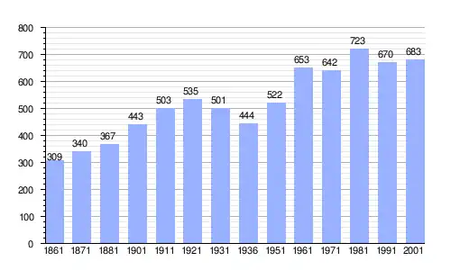 | Gráfica de evolución demográfica de Mantello entre 1861 y 2001 |