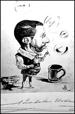 Caricatura de Manuel Zabala y Urdaniz cuya fotografía se reproduce en el libro "Gabinete Azul".