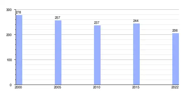 | Gráfica de evolución demográfica de Manzaneda entre 2000 y 2022 |