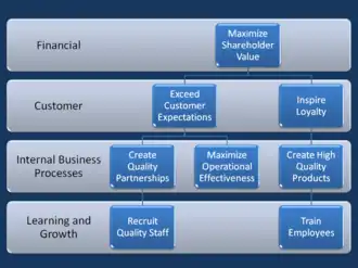 Kaplan y Norton no definen explícitamente lo que significa una perspectiva (aunque podría decirse que agrupan y describen los objetivos de una empresa), pero enumeran las cuatro perspectivas principales que una organización (con o sin fines de lucro) debe tener:[4]