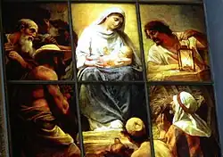 Varios textos del Nuevo Testamento de la Biblia mencionan a María. Los más antiguos, las epístolas de Pablo de Tarso, mencionan que Jesús "nació de una mujer" pero no dan su nombre.[35] Sí aparece su nombre, aunque de forma tangencial, en el evangelio más antiguo, el Evangelio de Marcos.[36] El Evangelio de Mateo añade la narración de la concepción milagrosa de Jesús y de su nacimiento y huida a Egipto.