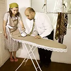 Esta serie de performance fotográfico está compuesta por cinco escenas cotidianas: “Cornisa”, “Burral”, “Guardapolvo”, “Manditel” y “Colacha”, en donde aparece la artista desempeñando distintas labores domésticas: planchar, alimentar, proteger, velar... La particularidad de estas imágenes es que las prendas usadas por la artista al llevar a cabo dichas tareas se expanden y se mezclan con el mobiliario doméstico, integrándose al mismo y relegando al cuerpo de la mujer a la condición de objeto. El vestido actúa como una extensión del cuerpo que, a su vez, constituye una extensión de la propia casa que habita.[6]