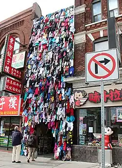 Es una instalación colaborativa que se compone por ropa que tiene la etiqueta “Made in China”, donada por la comunidad del Chinatown de la ciudad de Toronto. Las prendas fueron montadas a manera de fachada en el espacio entre dos edificios en dicho barrio, generando un vínculo que simboliza la conexión económica, física y simbólica entre los individuos y sus culturas. Este trabajo fue también llevado a cabo en junio de 2013 en la Nuit Blanche en Londres.[8]