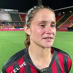 ![]() María Paula en una entrevista portando la camiseta de la selección sub-20 de Costa Rica en el 2022 | ||