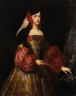 ![]() La duquesa de Montalto, Juan Bautista Martínez del Mazo, 1665. Óleo sobre lienzo, 120 x 100 cm. Museo Estatal de Baja Sajonia, Hanóver. | ||