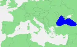 El mar Negro (en griego antiguo Πόντος Εὔξεινος; en griego moderno Μαύρη Θάλασσα o Εύξεινος Πόντος; en latín Pontus Euxinus) es un mar ubicado entre Europa Oriental y Asia Occidental. Se encuentra encerrado entre los Balcanes, la estepa póntica, Crimea, el Cáucaso y la península de Anatolia. El estrecho del Bósforo lo conecta con el pequeño mar de Mármara, y el estrecho de los Dardanelos conecta al mar anterior con el mar Egeo, que es una división del mar Mediterráneo. También está conectado con el mar de Azov, situado al noreste, por el estrecho de Kerch. El mar Negro forma una depresión elíptica con una pendiente de este a oeste, y tiene una superficie de 436 400 km² (sin incluir el mar de Azov), una profundidad máxima de 2212 m y un volumen de 547 000 km³.[1][2][3] Los países ribereños del mar Negro son, empezando por el sur y en sentido horario, Turquía, Bulgaria, Rumania, Ucrania, Rusia y Georgia.[4]