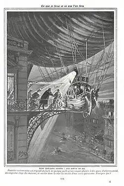 Por último, junto con los grandes nombres de la ilustración de la literatura popular, como Gino Starace o Georges Vallée, quienes trabajaron con numerosos editores,[37] la mayoría de los ilustradores rara vez se adentraron en el terreno de la especulación, como Albert Guillaume, que ilustró un número especial de L'Assiette au Beurre (El Plato de Mantequilla) en 1901 dedicado al espacio, o Arnould Moreau, que ilustró el cuento de Octave Béliard La Journée d'un Parisien au XXIe siècle (El día de un parisino del siglo XXI en Lectures pour Tous (Lecturas para Todos) en 1910.[37] A partir de los años veinte, Henri Lanos cedió paso a A. Noël para que ilustrara artículos científicos para la revista Lo Sé Todo.[79] Más cercanos al arte industrial, los dibujos de Noël se centraban en aspectos técnicos y, por tanto, difieren de la poesía que surgió de la obra de su predecesor. Este cambio generacional ilustró la evolución general de las revistas, que se centraron en favorecer cada vez los avances técnicos antes que la experimentación mental que promovía el modelo de lo maravilloso científico renardiano.[79]