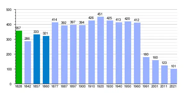Población según el Diccionario geográfico-estadístico de España y Portugal de Sebastián Miñano.[8] Población de derecho según los censos de población del INE Población de hecho según los censos de población del INEEntre el censo de 1970 y el anterior, este municipio desaparece porque se integra en el municipio 40180 (Sangarcía). Reaparece en 1991 |